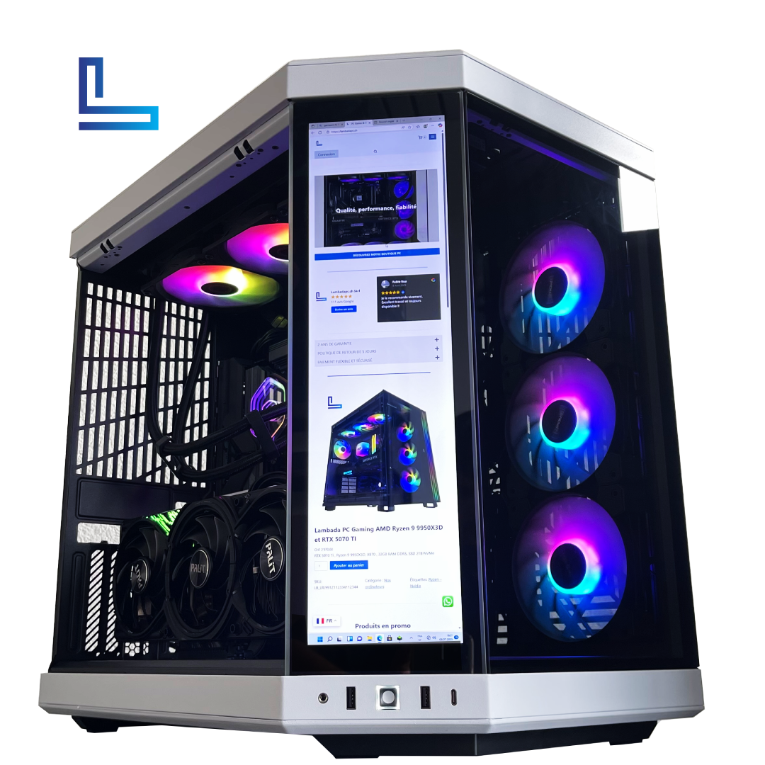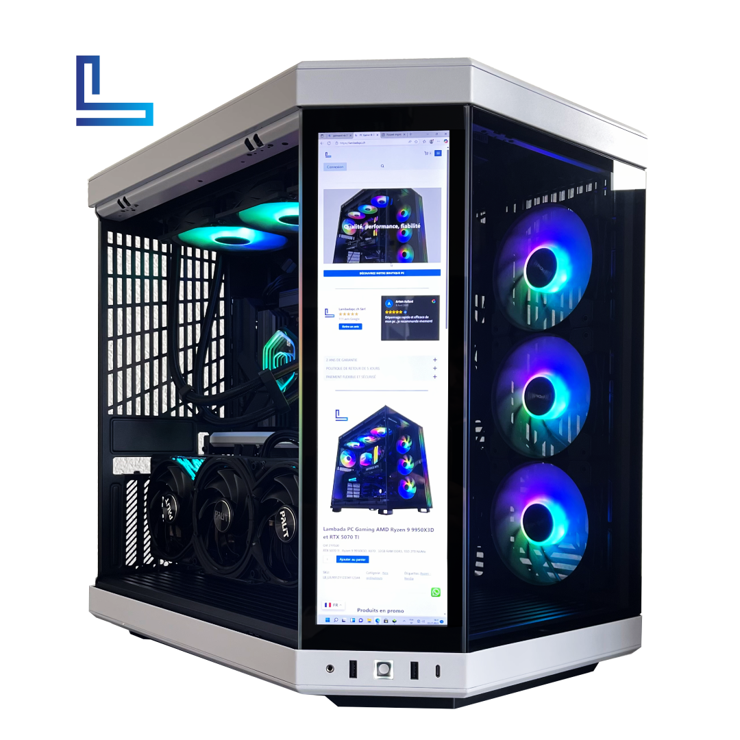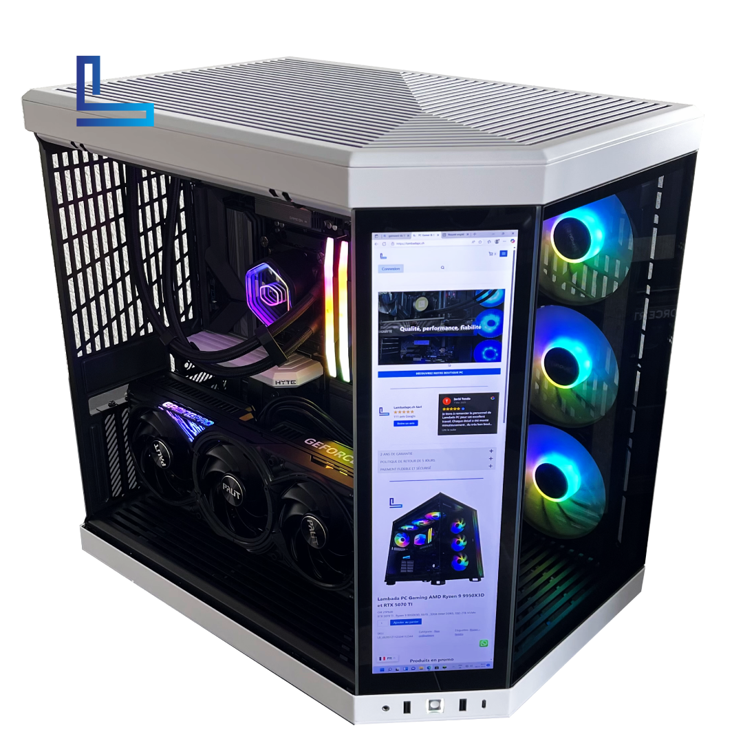 Avec son boîtier Hyte Y70 Touch doté d’un écran intégré, ce PC incarne l’alliance parfaite entre technologie et esthétique moderne.